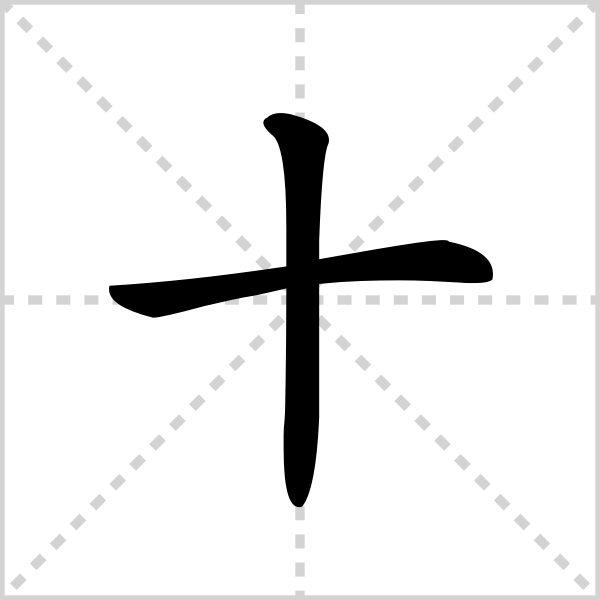 [ shí ]| 部首:十 | 笔画:2 | 五行:金 | 五笔:FGH |