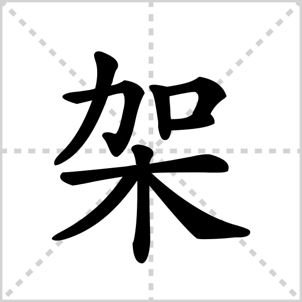 | 组词 | 打架招架棚架框架笔架衣架屋架架势马架井架 |