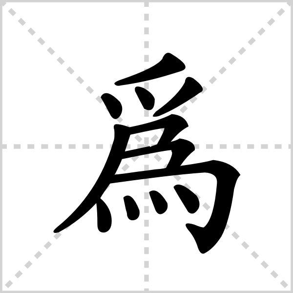 假借为“伪”。做,作,干,搞,我生之初,尚无为。——《诗·王风·兔爰》又如:为事(办事;成事);为诈(作假);为薪(取薪);为善(胡国度真孙做善事);为道(学道,实践圣道);为头(居首;从头开始);为人(做人);为后(立后);为底(治足茧)